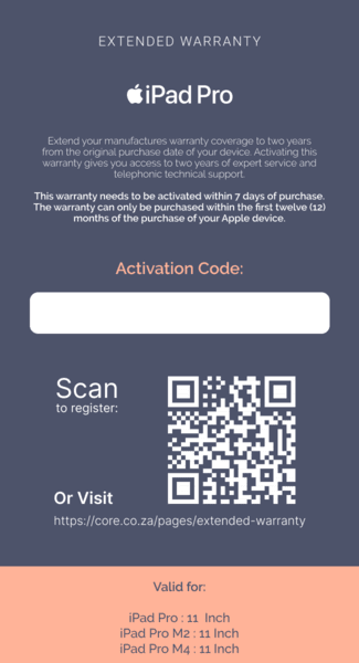 The Warranty needs to be activated within 7 days of purchase. The warranty can only be purchased within the first 12 months of the purchase of your Apple device.