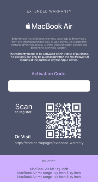 The Warranty needs to be activated within 7 days of purchase. The warranty can only be purchased within the first 12 months of the purchase of your Apple device.
